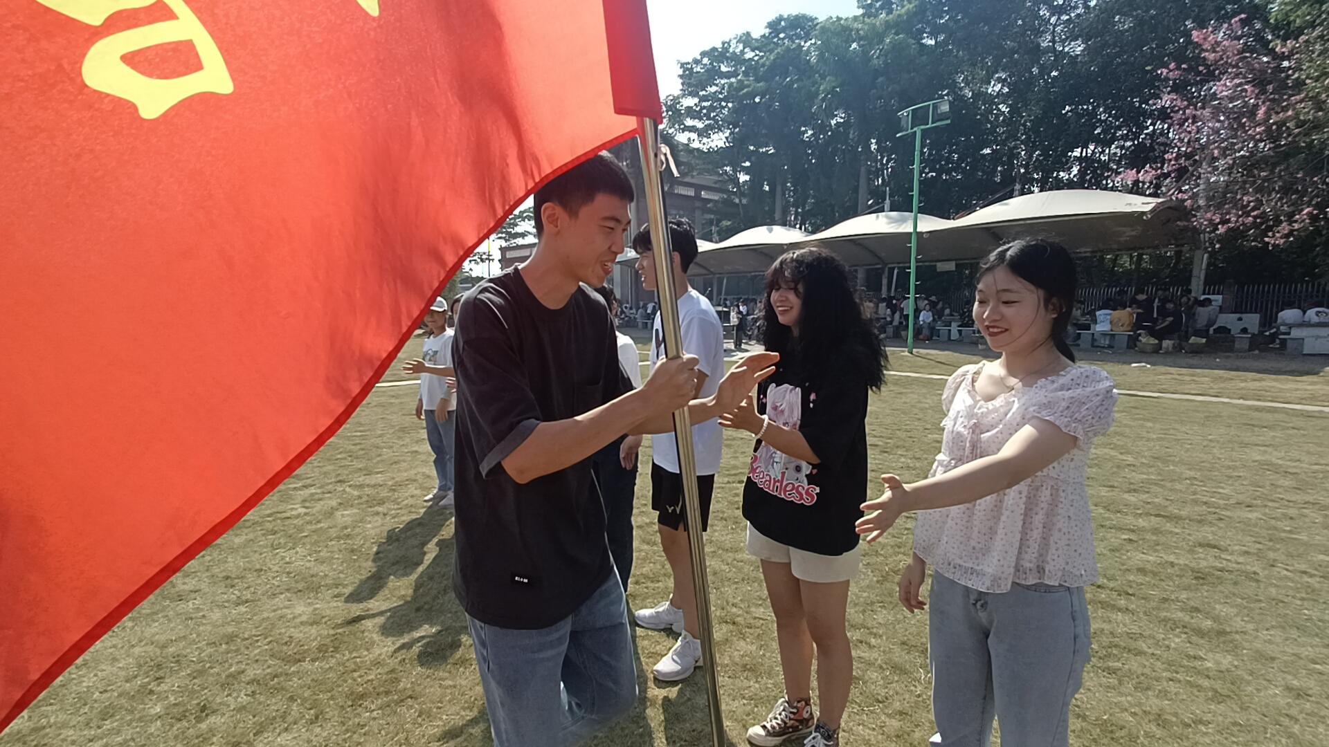 迎风飘扬的团旗与院旗,承载着团委、员工会一代又一代员工干部服务同学,无私奉献,砥砺前行的光辉历史与辉煌成就。接过团旗的那一刻,我感受到了沉甸甸的责任落在肩上,感受到了学长学姐对于我们的殷切希望与嘱托。薪火代代传,当旗帜交到我们手中的时候,我们同样要用奉献与担当,交出一份令人满意的答卷,躬耕不辍,行路不止。