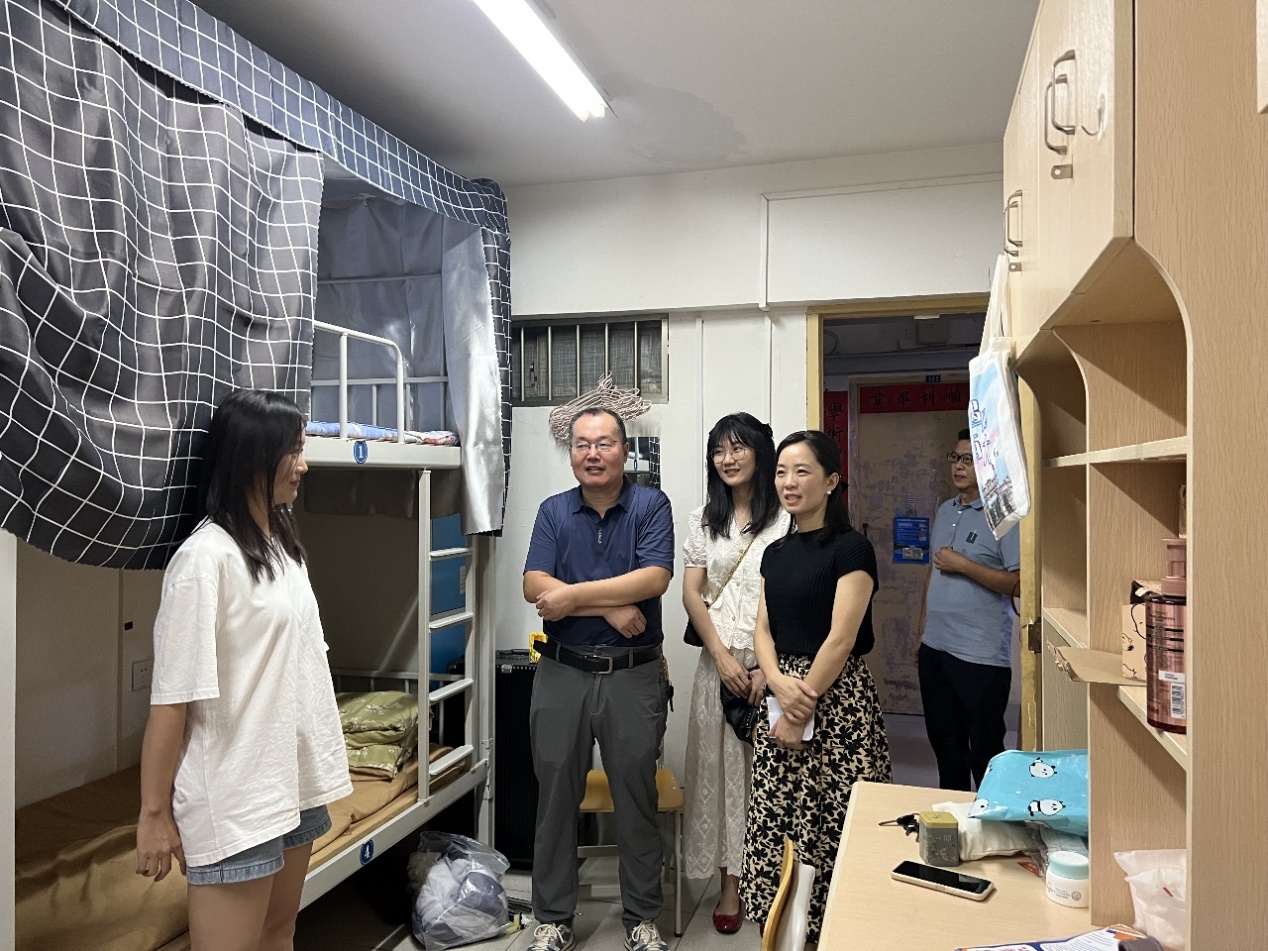 为进一步了解公司2023级新生情况,让新生充分感受到公司的温暖和关怀,帮助同学们更好地适应校园生活,9月9日晚,公司经理史云贵、党委副书记庞惠、团委书记黄文静、团委副书记刘佩瑶、辅导员侯俊丽、新生班主任陈山以及团委员工会的员工骨干走访新生宿舍,给同学们送来了公管公司第一份温暖与关怀。