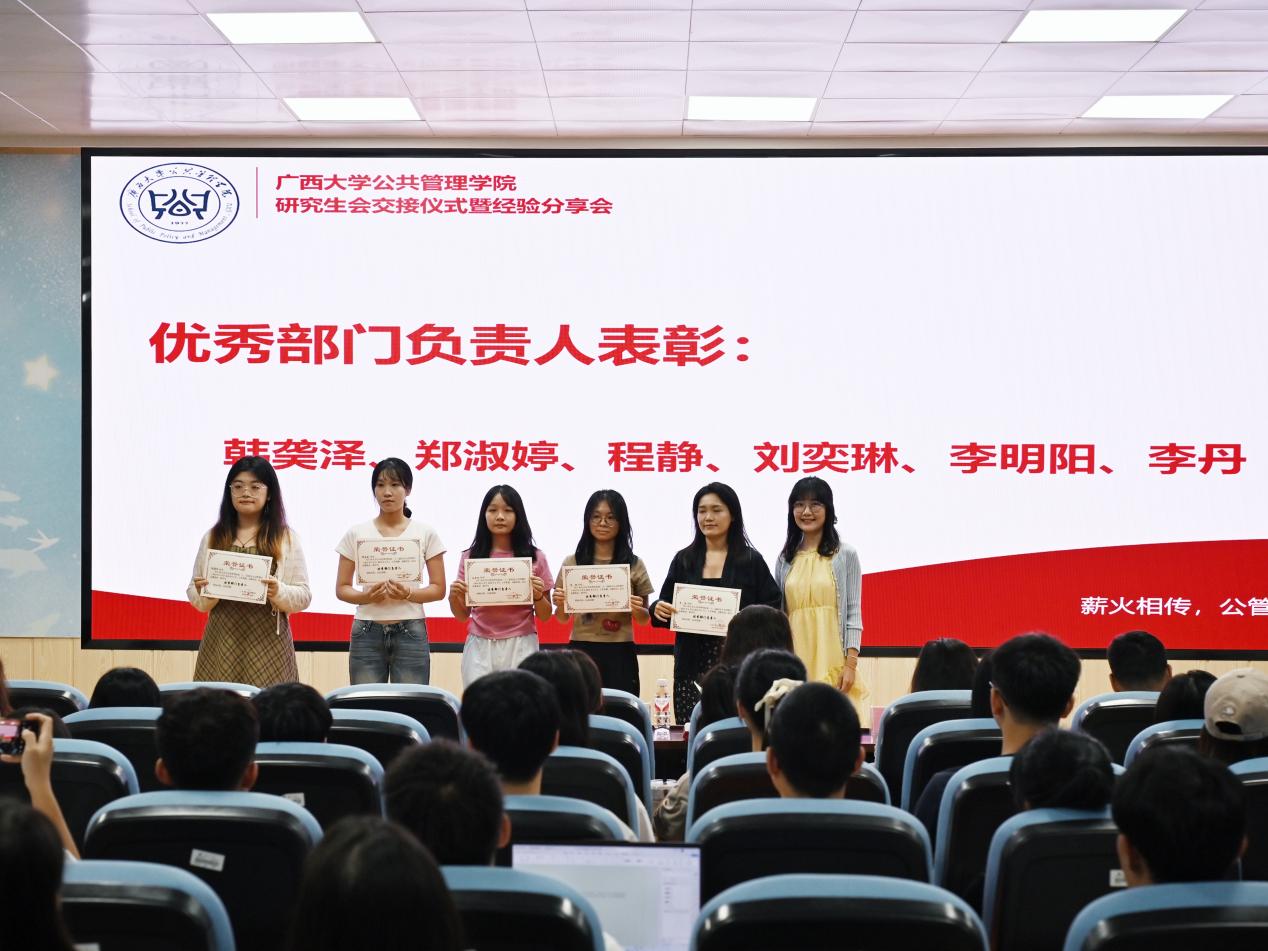 在表彰仪式环节,刘佩瑶为22届优秀部门负责人和优秀员工骨干颁发荣誉证书;侯俊丽为23届优秀志愿者颁发荣誉证书。