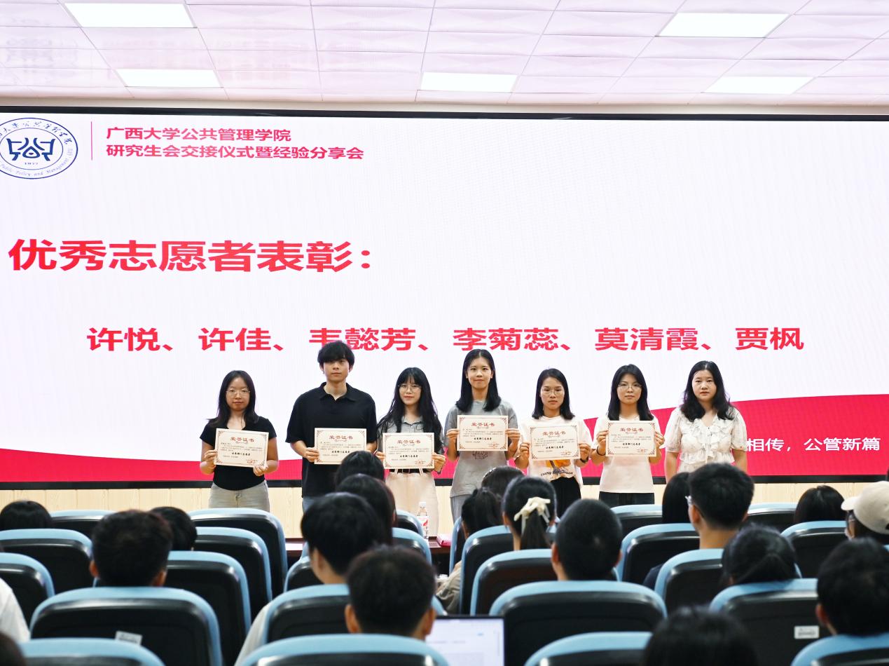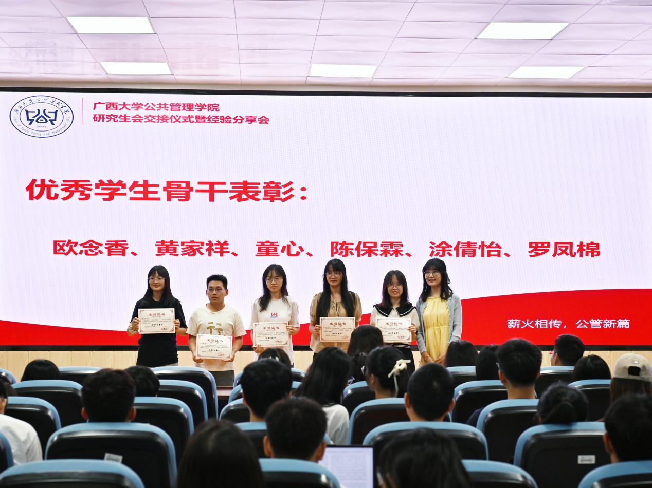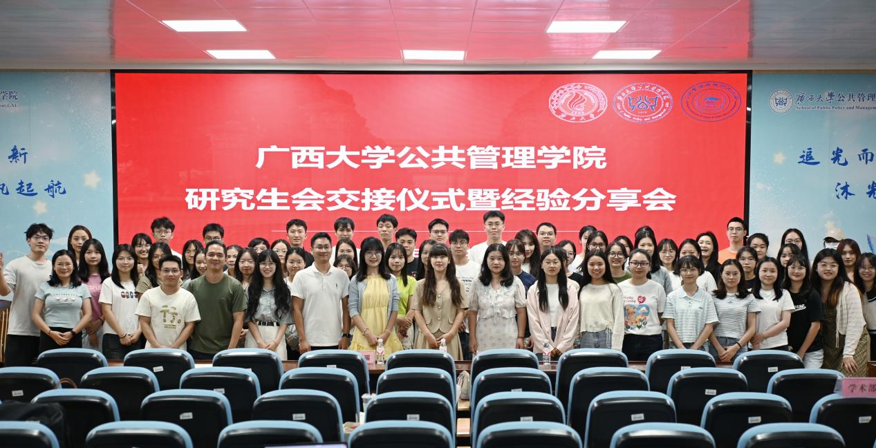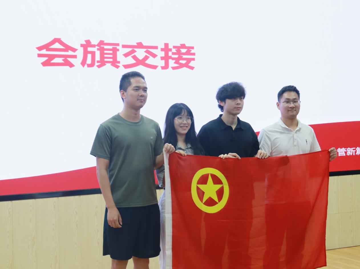 随后是会旗交接仪式,22届主席团成员向23届主席团成员交接了会旗,这象征着公管公司精神与文化的一次深刻传承,寓意着新一届研究生会将继承前辈们的优良传统,继续秉承“博学、笃行”的院训精神,以更加饱满的热情和更加坚定的步伐,推动公司各项工作再上新台阶。活动最后,全体合影留念。