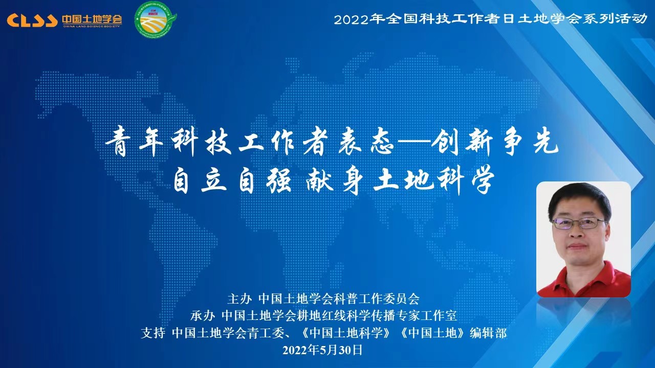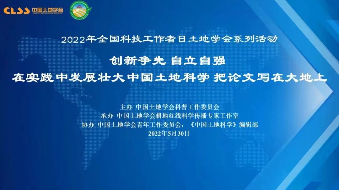 2022年5月30日是第6个全国科技工作者日,中国土地学会开展了以“创新争先、自立自强,在实践中发展壮大中国土地科学,把论文写在大地上”为主题的系列活动。本次活动包括“青年科技工作者说”、“土地科普大咖圆桌会议”、“最美科技工作者座谈”、“回忆老一代土地科学家”、“土地科技进矿区”、“土地科技助力黑土地保护”和“寻访耕保少年”等7个环节。中国土地学会青年工作委员会主任、公司龙花楼教授与汪晗副教授参与此次活动。