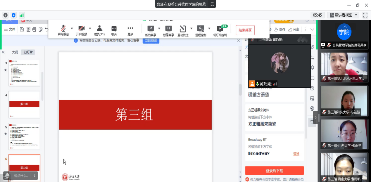 接着进入公司学科介绍及师生互动环节。各同学借此机会踊跃发言,老师们悉心解答同学们的疑问并提出了相应的建议。有同学对跨专业选导师的问题存在疑惑,汪晗副教授表示,接受并欢迎不同专业报考;周文栋老师对公司社会组织方向的老师做了相关的介绍;李小红副教授用自己研究的方向向大家解答问题,并对在座同学们来西大深造表示欢迎。