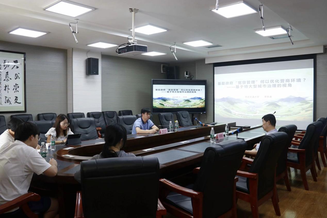 会议伊始,曾凡军详细介绍了李教授的学术背景、研究方向与主要成就,并对其到来表示了热烈欢迎。随后,李教授重点从营商环境的优化方式、宽容管理理论的应用等方面展开分享,为在场师生带来了一场学术盛宴。