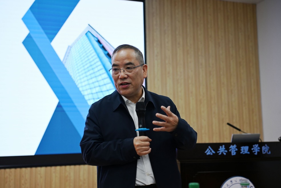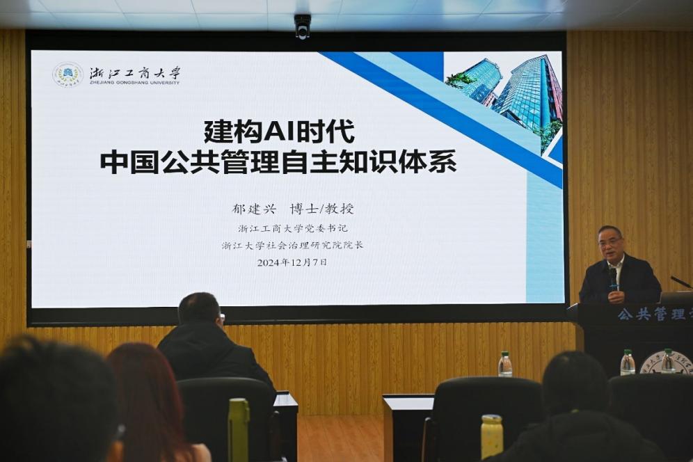 为了增强学术意识,深化同学们对中国公共管理自主知识体系的深刻理解。12月7日下午,浙江工商大学党委书记,浙江大学社会治理研究院经理、国家制度研究院首席专家郁建兴教授受邀于我院107报告厅作题为《建构AI时代中国公共管理自主知识体系》的学术讲座。本次讲座由公司党委书记聂鑫教授主持,经理史云贵教授、副经理曾凡军教授、刘汶副教授、李小红副教授、陈璟浩副教授、姜棪峰老师及60余名博士、硕士研究生到场聆听,现场学术氛围浓厚。