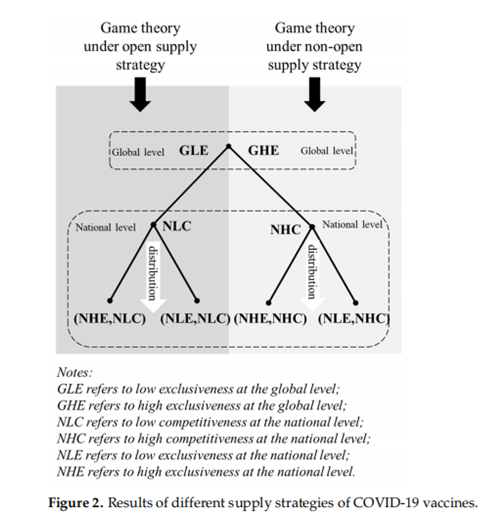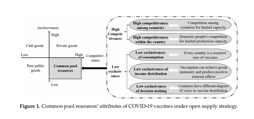 在开放供给策略下,新冠疫苗的公共池塘资源属性,使其成为了全球公共物品,在全球层面将具有低排他性。疫苗购买国可以基于本国疫苗的低竞争性,进一步将所获得的疫苗分配给国民使用,决定新冠疫苗在国内的排他性。若将新冠疫苗垄断为本国所有,在全球层面采用不开放的供给方式,这将使得新冠疫苗在全球层面呈现出高排他性的特点。这将导致新冠疫苗成为那些具有较高支付能力的个人的私人物品,或处于供给不足的“公地悲剧”状态。