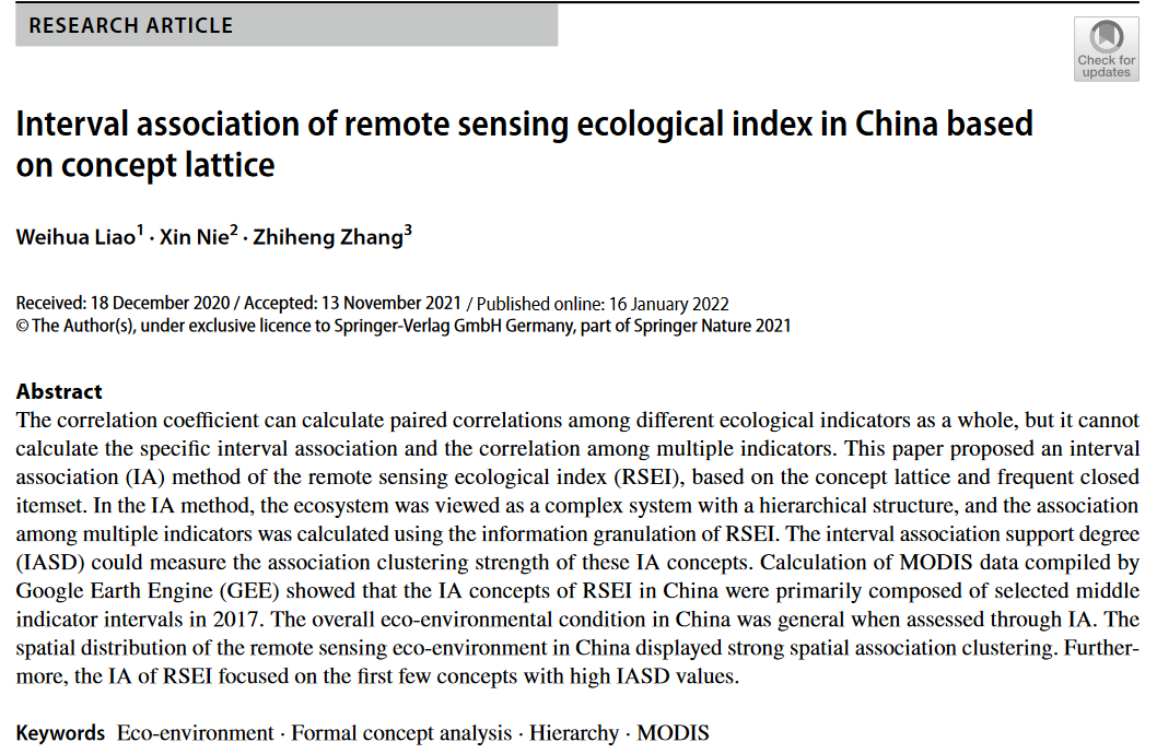 聂鑫、廖伟华等在ESPR发文检验基于概念格的中国遥感生态指数区间关联