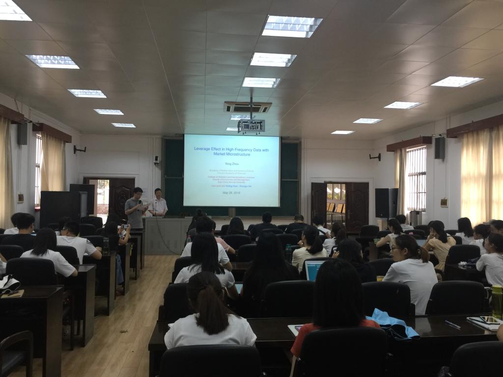 2018年5月28日上午九点,公司荣幸邀请长江学者、国家杰出青年基金获得者、中国科公司百人计划入选者、国务院政府特殊津贴专家、上海财经大学统计与管理公司周勇教授来公司做学术报告,为我们讲解风险管理及高频数据杠杆效应,公管管理公司聂鑫教授、数信公司刘芳教授一同参加此次讲座,并吸引各公司研究生前来。