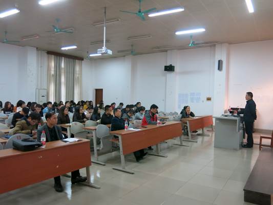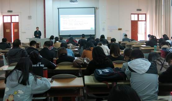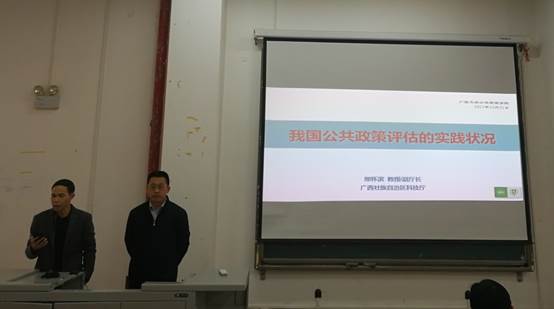 在报告会开始前,李小文副经理隆重地介绍了邢怀滨教授。邢怀滨教授是哲学硕士与博士,现挂任广西科技厅副厅长,国家科技部科技评估中心主任助理,主要从事科技创新政策与管理、公共政策评估等方面的管理和研究工作,出色的学历与工作背景让同学们不禁心生敬佩之意。